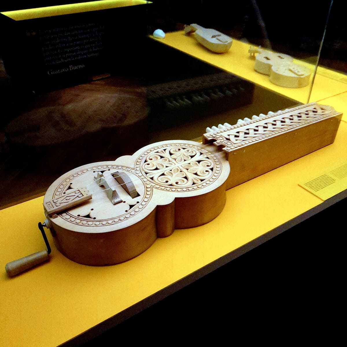 El organistrum es quizás el instrumento más fascinante de toda la orquesta. Es un instrumento de cuerda frotada que funciona con una rueda giratoria accionada por una manivela. Originalmente, se tocaba entre dos personas: una giraba la manivela y la otra presionaba las teclas para cambiar el tono de las cuerdas. Este instrumento creaba un sonido sostenido y zumbante (similar a un bordón) y se utilizaba principalmente en la música sacra. El organistrum del Pórtico es una de las representaciones más icónicas y mejor conservadas de este raro instrumento medieval.